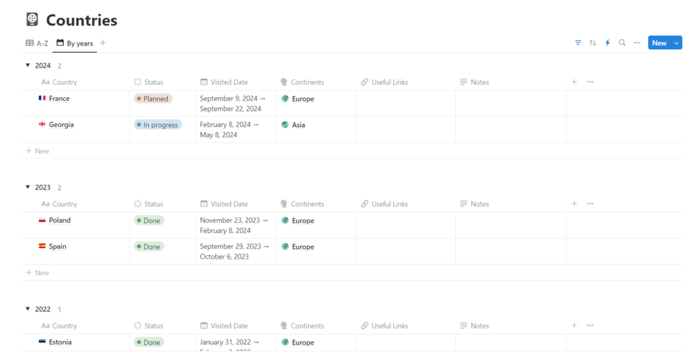 Visited Countries Tracker. A Notion Template
